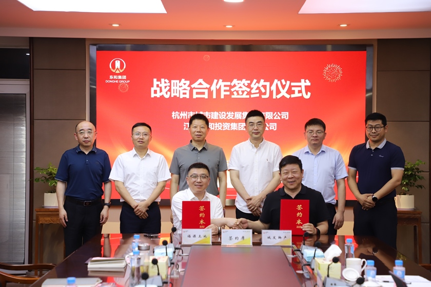 在市城建發(fā)展集團(tuán)黨委副書記、總經(jīng)理謝偉和江蘇東和集團(tuán)黨委書記、董事長朱亞洲的見證下,杭州城發(fā)物流產(chǎn)業(yè)有限公司與如東縣福源土地開發(fā)有限公司簽訂了戰(zhàn)略合作協(xié)議。