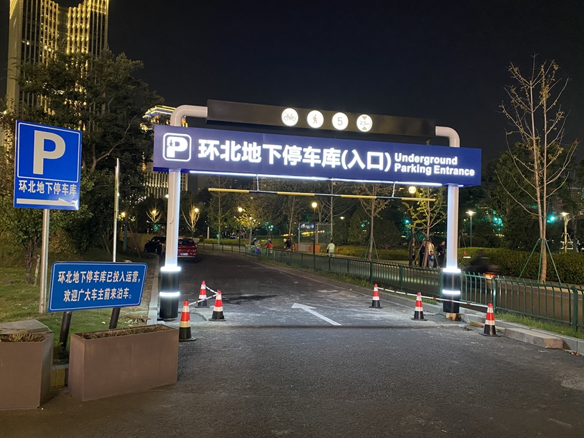 環(huán)北車(chē)庫(kù)緊鄰杭州大廈、坤和中心、杭州中心、西湖文化廣場(chǎng)等大型綜合體和寫(xiě)字樓,日常臨時(shí)停車(chē)的“新車(chē)主”占比較大,不少車(chē)主反映,希望能有更醒目的停車(chē)指示導(dǎo)引。為此,城發(fā)資管公司精心研究,推動(dòng)提升改造,由浙江大學(xué)建筑設(shè)計(jì)研究院有限公司設(shè)計(jì)的環(huán)北車(chē)庫(kù)入口龍門(mén)架已于國(guó)慶期間投入使用,獲得了市、區(qū)兩級(jí)城管局和交警部門(mén)的大力支持和認(rèn)可。龍門(mén)架橫跨6.4m,高4.2m,采用不銹鋼激光切割,內(nèi)置LED亮燈,在精準(zhǔn)有效加快停車(chē)引流的同時(shí),也為武林門(mén)碼頭增添了夜景新亮點(diǎn)?。
